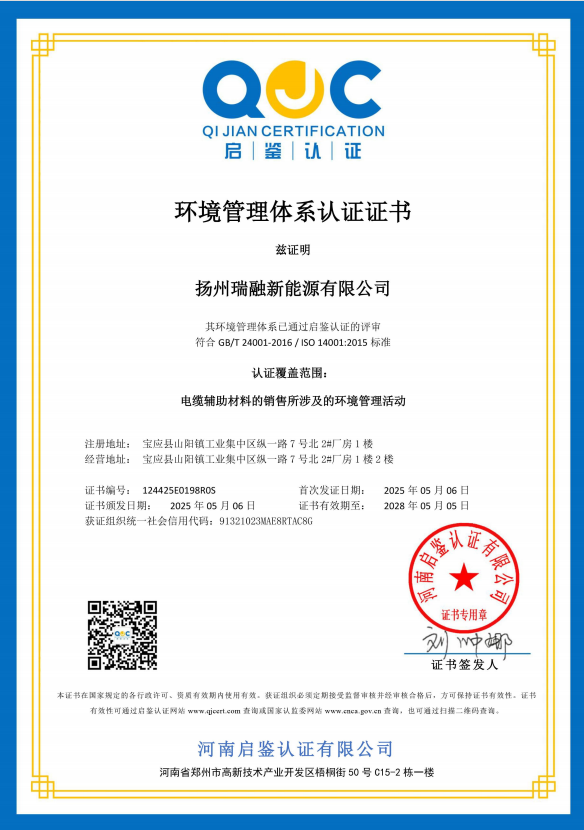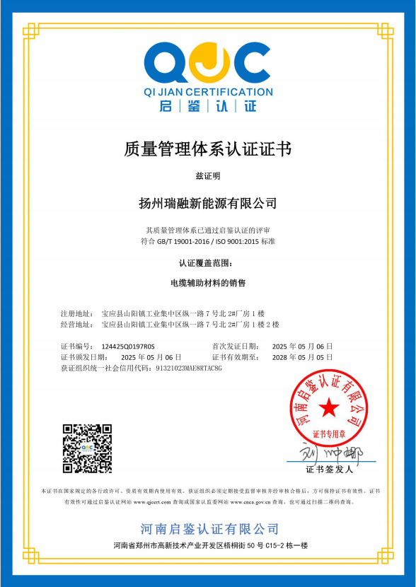Yangzhou Ruirong New Energy Co., Ltd. is located in the northern suburbs of Yangzhou, a famous historical and cultural city in China. It is a technical enterprise specializing in the research and development and manufacturing of cable materials.