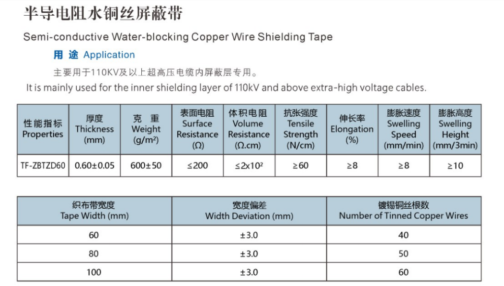 Semi-conductive Vater-blocking Copper VireShielig Tape